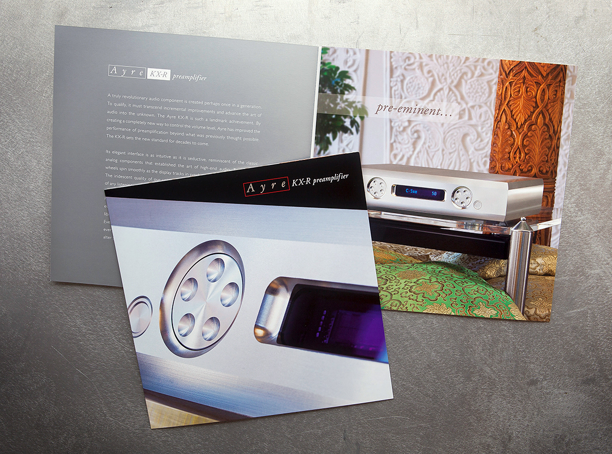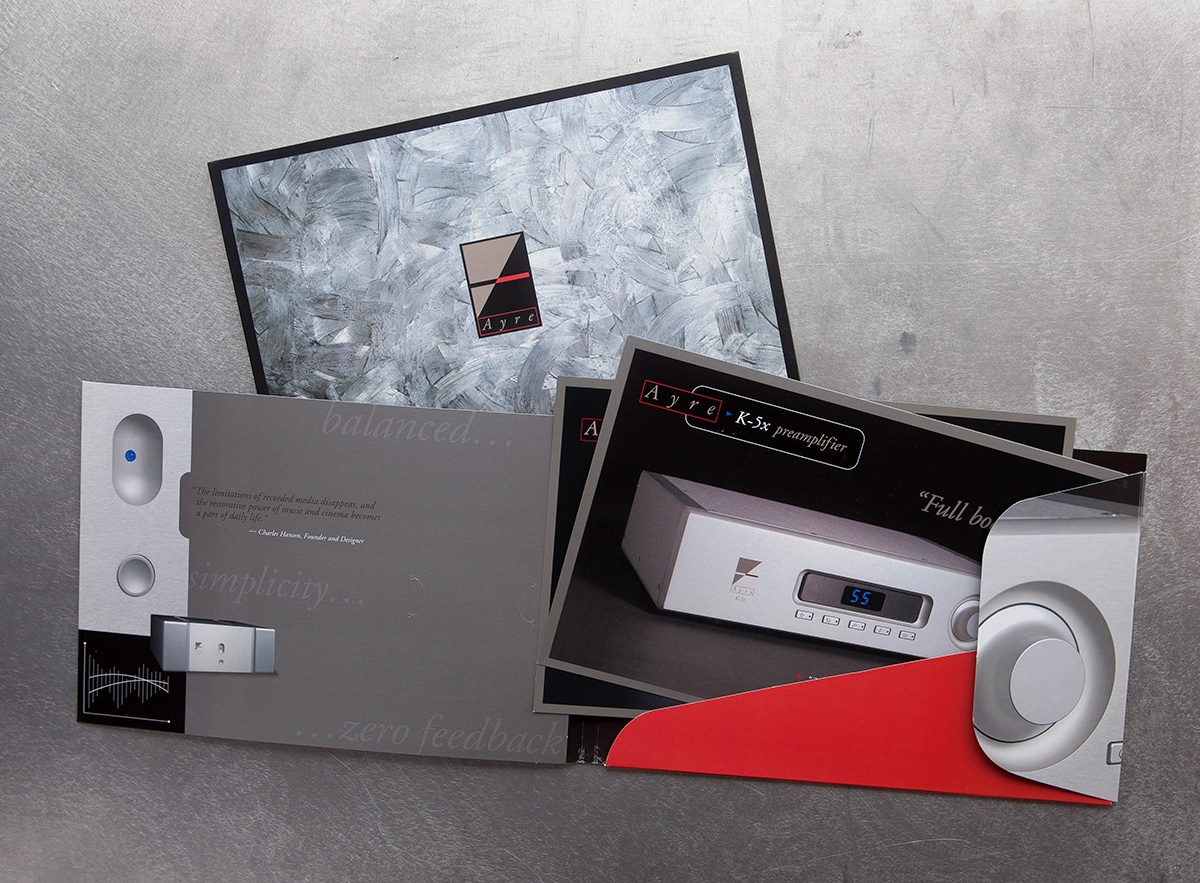 A variety of printed brochures for one of the World's best audio component makers located right here in Boulder, Colorado